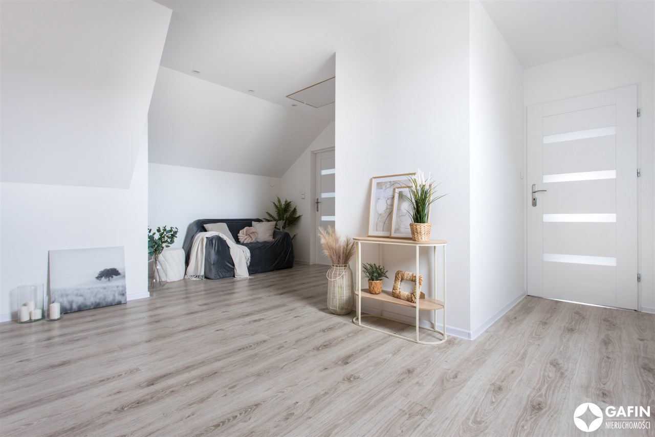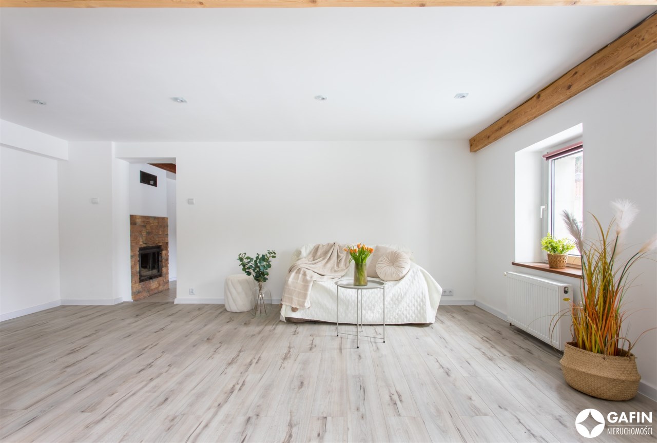 Dom o powierzchni 144 m², po generalnym remoncie, urzeka ponadczasowym stylem, funkcjonalnym układem oraz klimatycznym kominkiem, który tworzy wyjątkową atmosferę w części dziennej.