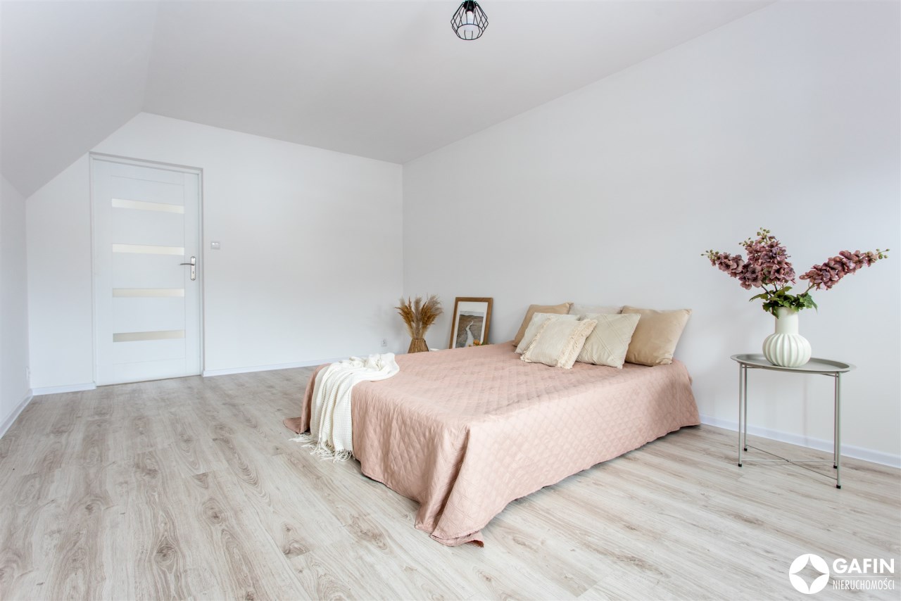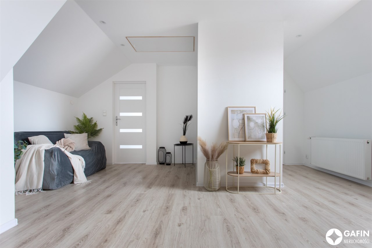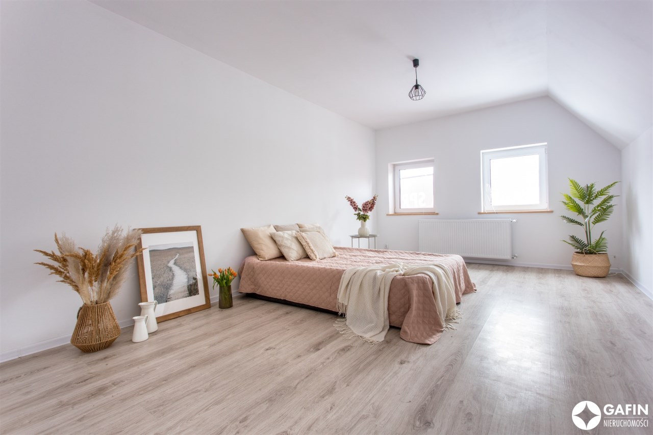 Dom o powierzchni 144 m², po generalnym remoncie, urzeka ponadczasowym stylem, funkcjonalnym układem oraz klimatycznym kominkiem, który tworzy wyjątkową atmosferę w części dziennej.